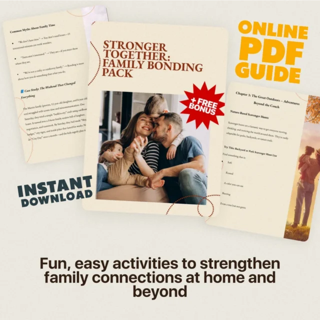 In a world filled with screens, schedules, and constant distractions, genuine family connection can easily slip away. The Stronger Together: Family Bonding Pack brings your family back to what matters most: presence, laughter, shared experiences, and emotional closeness.